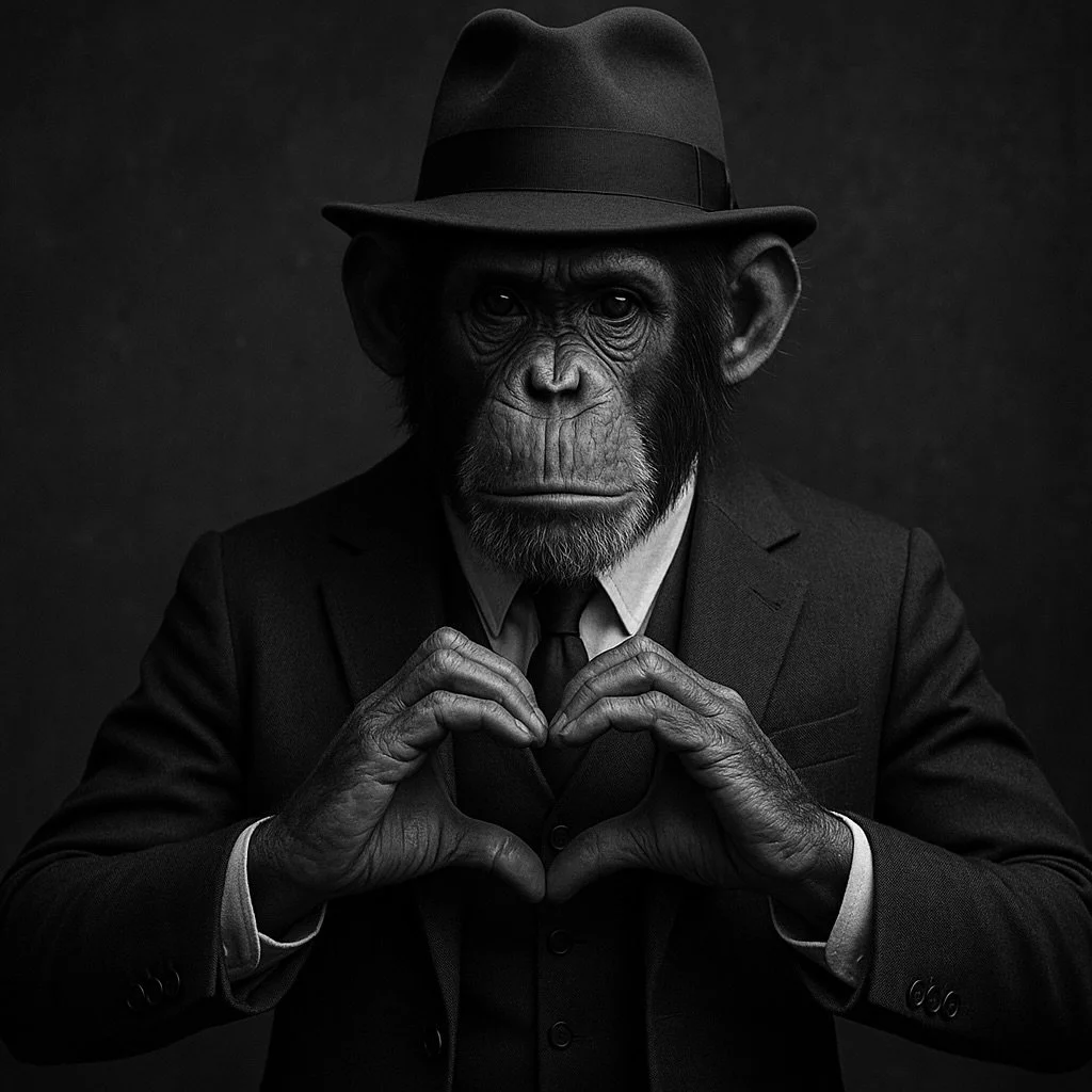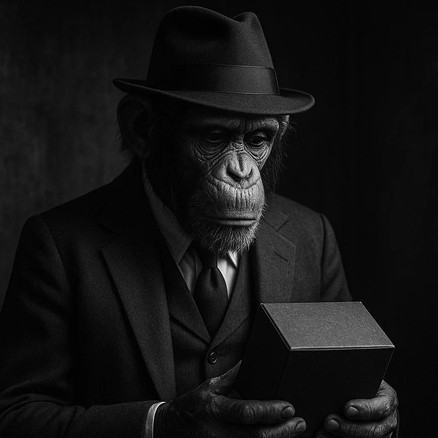 That’s right, folks — when the night is long, the Wi-Fi’s slow, and your existential dread is buffering, there’s one chimpanzee who’s got your back: Mr. Pixels, the most dapper simian in the noir universe!